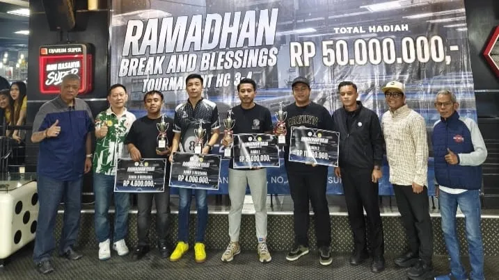 SURABAYA – KEMPALAN: Kota Pahlawan kembali membuktikan diri sebagai barometer pembinaan olahraga yang tak kenal waktu. Turnamen biliar bergengsi bertajuk ‘Ramadhan Break and Blessings Tournament HC 3–4’ resmi berakhir pada Kamis (26/2/2026) di Galaxy Pool & Karaoke, Surabaya. Ajang ini menjadi bukti nyata bahwa atmosfer kompetisi tetap membara meski di tengah ibadah puasa.