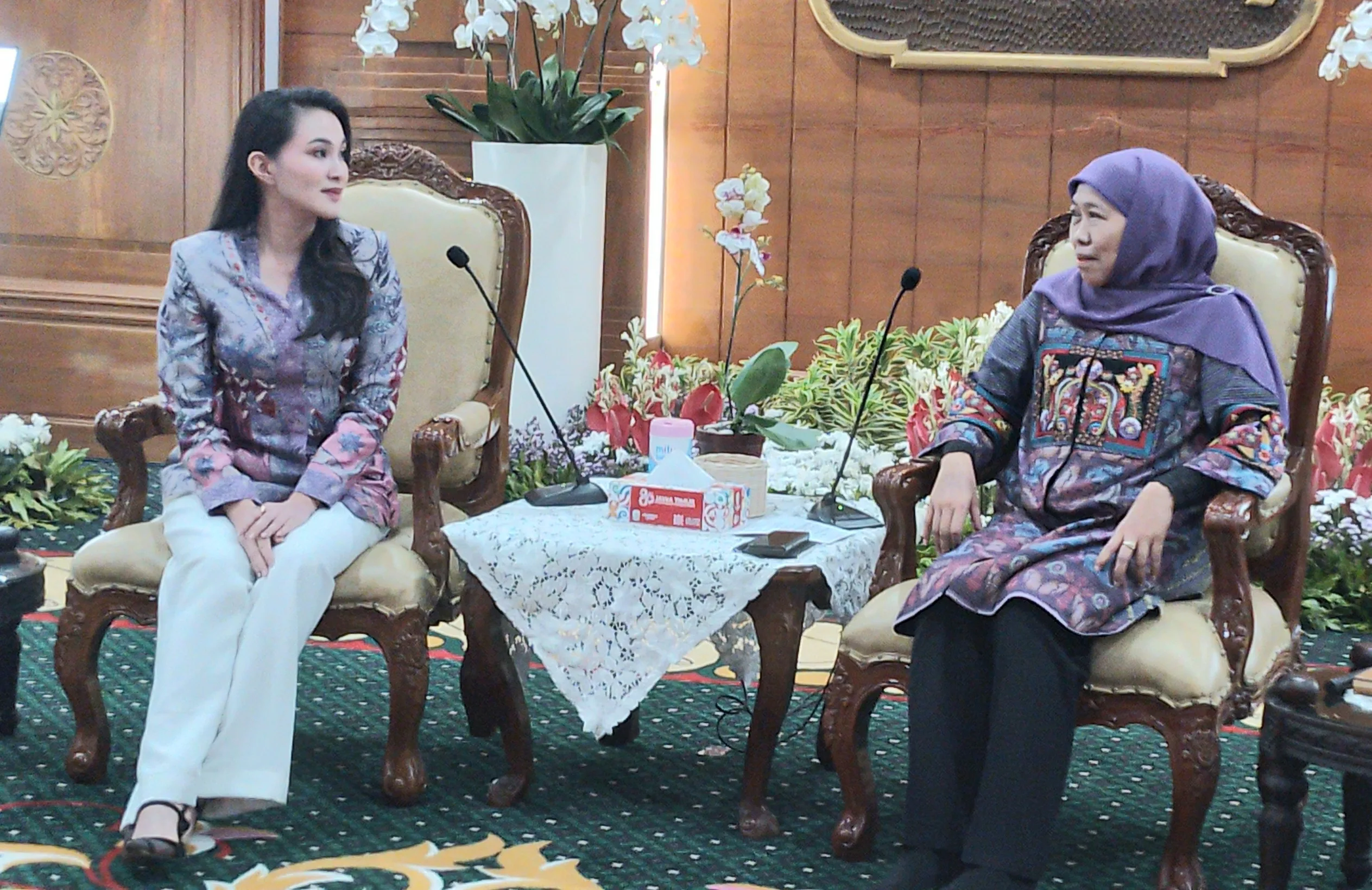 Gubernur Jawa Timur Khofifah Indar Parawansa menerima kunjungan kerja Gubernur Maluku Utara Sherly Tjoanda di Gedung Negara Grahadi Surabaya, Jumat (27/2). (Foto: Dwi Arifin/kempalan.com).