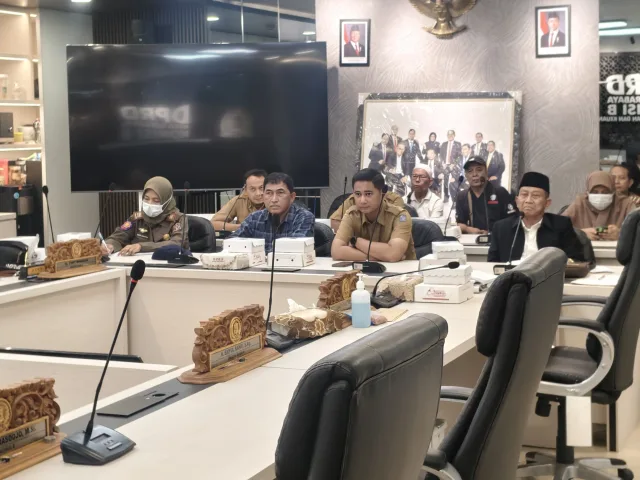 SURABAYA-KEMPALAN: Warga Kelurahan Simomulyo, Kecamatan Sukomanunggal, mengadu ke Komisi B DPRD Surabaya terkait keberadaan bangunan liar (bangli) di atas tanah milik Pemerintah Kota (Pemkot) Surabaya serta aktivitas pemotongan unggas yang diduga mencemari lingkungan. Aduan tersebut disampaikan dalam rapat dengar pendapat di DPRD Surabaya, Senin (9/3).