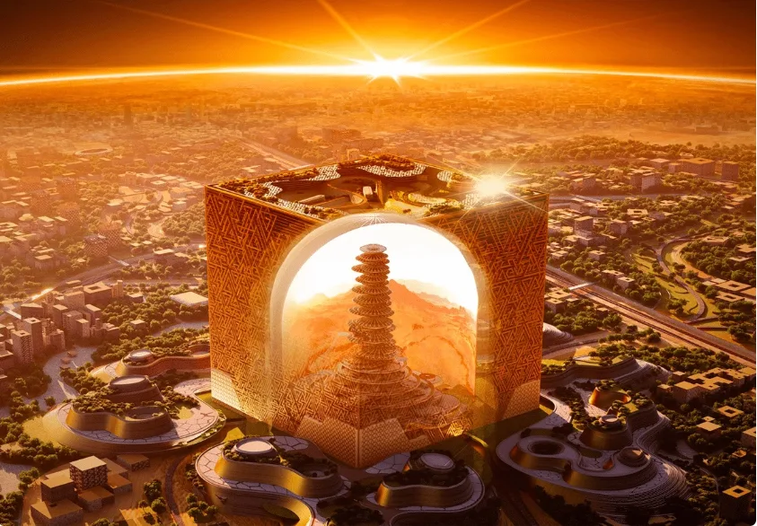 Itu akan seperti Kakbah dalam ukuran yang raksasa bengkak. Lokasinya di Riyadh, ibu kota Arab Saudi.