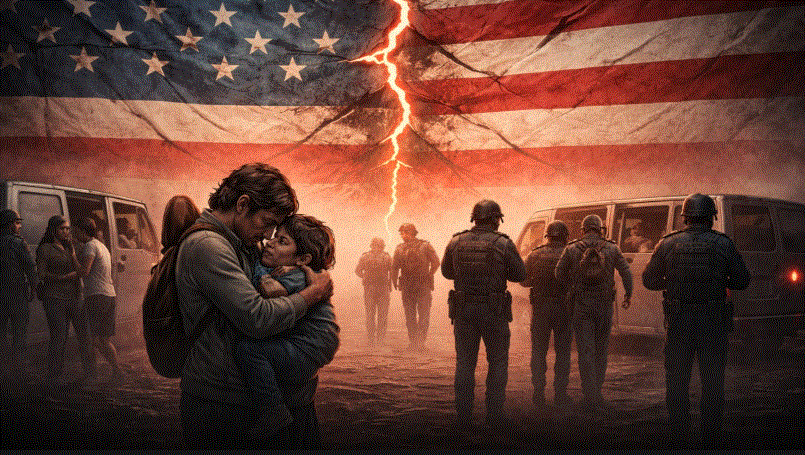 Gambaran yang ia sajikan bukan metafora kosong. Anak-anak telah dipisahkan dari orang tua tanpa kejelasan hukum. Warga ditangkap oleh orang bertopeng tanpa identitas.