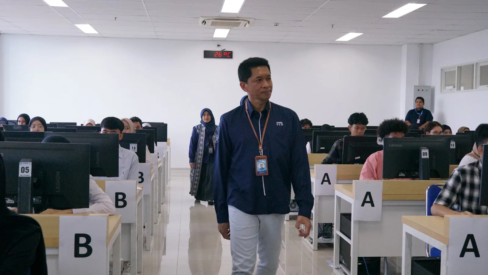 Dari sisi keamanan, ITS menerapkan prosedur skrining yang ketat di setiap ruangan. Setiap peserta diperiksa menggunakan metal detector, termasuk pengecekan menyeluruh terhadap jam tangan, kacamata, hingga aksesori yang berpotensi menjadi alat komunikasi. “Semua hal yang mencurigakan kami periksa agar tidak ada kecurangan,” tegas Bambang.