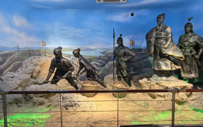 Sambil tetap berdiri di tempat, Anda serasa dibawa berlayar dari ujung kanal itu: di kota Hangzhou. Anda diajak menyusuri sungai ke arah kota Suzhou. Terus ke utara melewati kota Wuxi. Ke utara lagi melewati kota Yangzhou. Lalu sampailah di kota Huai An. Kapal berhenti di situ.
