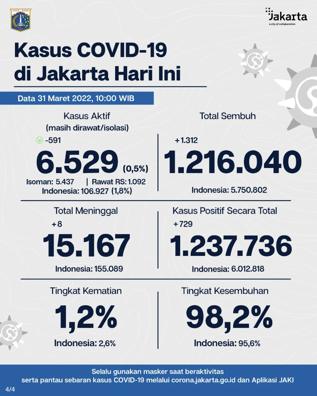 Kasus dan Vaksinasi Covid-19 di Jakarta 31 Maret 2021