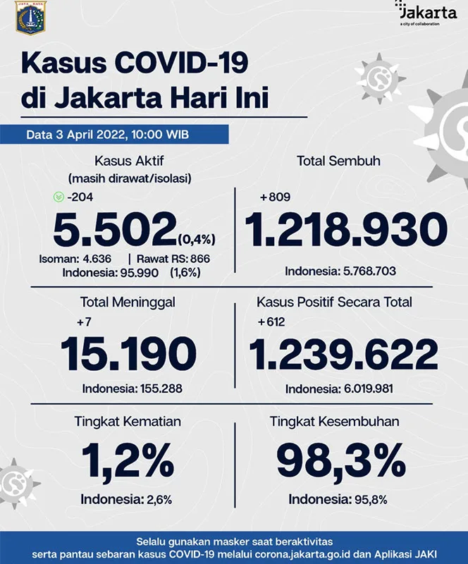 Kasus dan Vaksinasi Covid-19 di Jakarta 3 April 2022