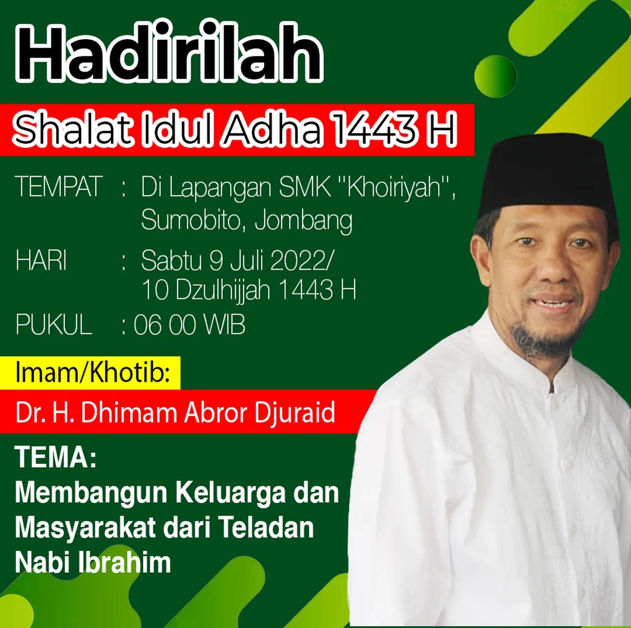 Founder Kempalan.com Dr. H. Dhimam Abror Imam/Khotib Shalat Idul Adha