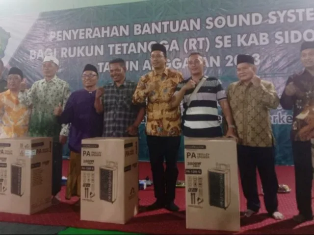 Bupati Sidoarjo Serahkan 340 Speaker Aktif di Wonoayu, Insentif RT/RW Rp 500 Ribu Per Bulan Diberikan Awal 2024