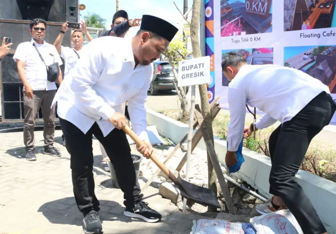 Peringati Hari Pers Nasional, Pemkab Bersama PWI Gresik Tanam 250 Pohon Tabebuya di Titik Nol Gresik-Lamongan