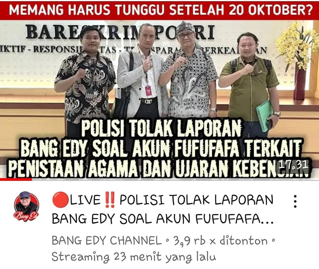 kempalanews Edy Mulyadi dan Kampak Akan Melaporkan Fufufafa schedule Selasa, 8 Oktober 2024, pukul : 07:00 WIB