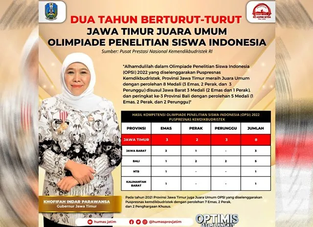 Tahun 2022, untuk Kesepuluh Kalinya Jatim Raih Juara Umum Kompetisi Sains Madrasah