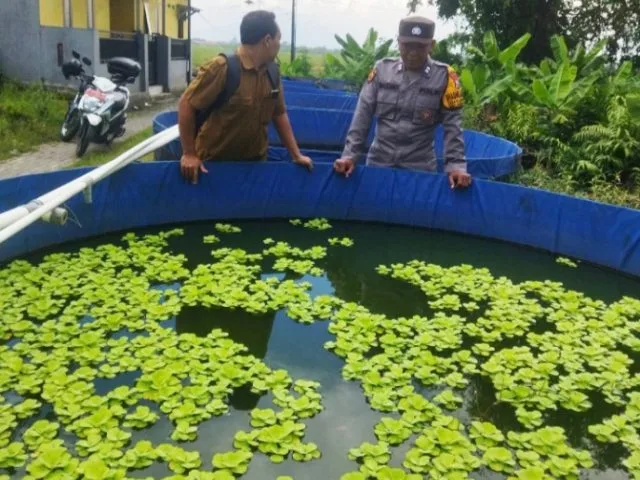 Bhabinkamtibmas Pademonegoro Polsek Sukodono Bersama Warga Tinjau Kolam untuk Budidaya Ikan Dukung Program Ketahanan Pangan