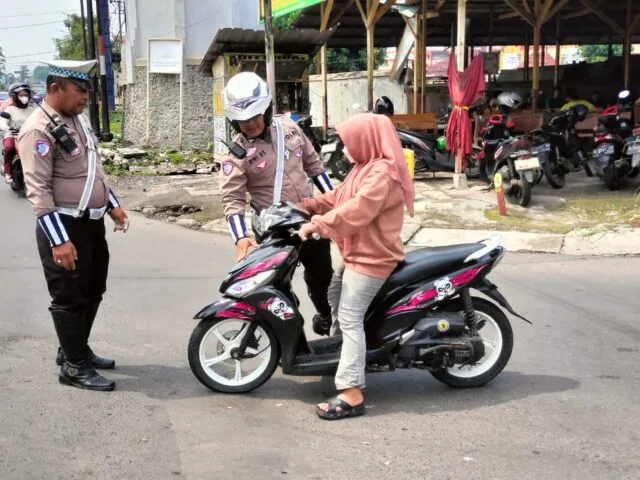 Upaya Humanis Anggota Polsek Krian Edukasi Pengendara Tanpa Helm