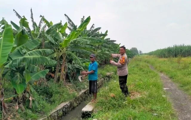 Bhabinkamtibmas Polsek Wonoayu Dampingi Warga Tanam Melon Perkuat Ketahanan Pangan