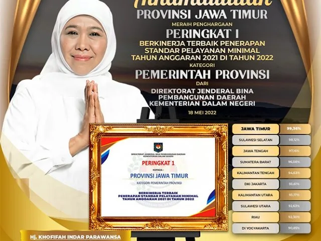 Pemprov Jatim Raih Penghargaan Provinsi Berkinerja Terbaik Penerapan SPM dari Kemendagri