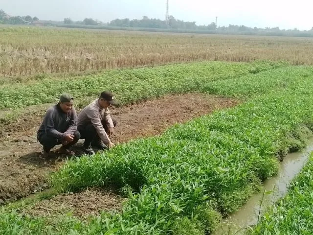 Perkuat Ketahanan Pangan, Bhabinkamtibmas Polsek Sukodono Dukung Pengembangan Sayur Kangkung