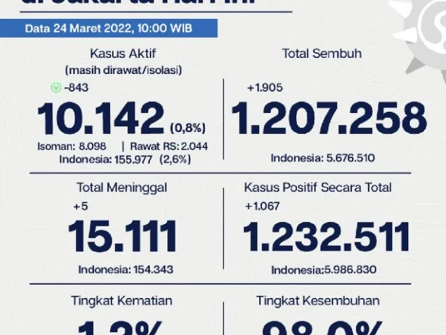 Perkembangan Kasus dan Vaksinasi Covid-19 di Jakarta 21 Maret 2022
